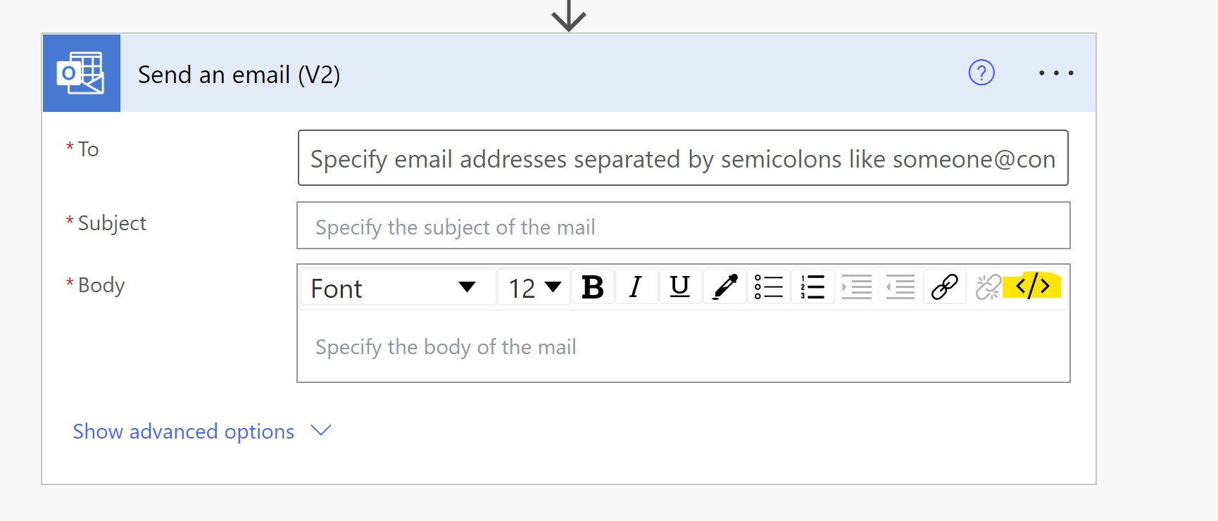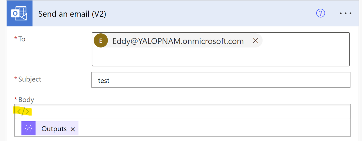 Finally, In the send an email action, make sure you switch the option for HTML: