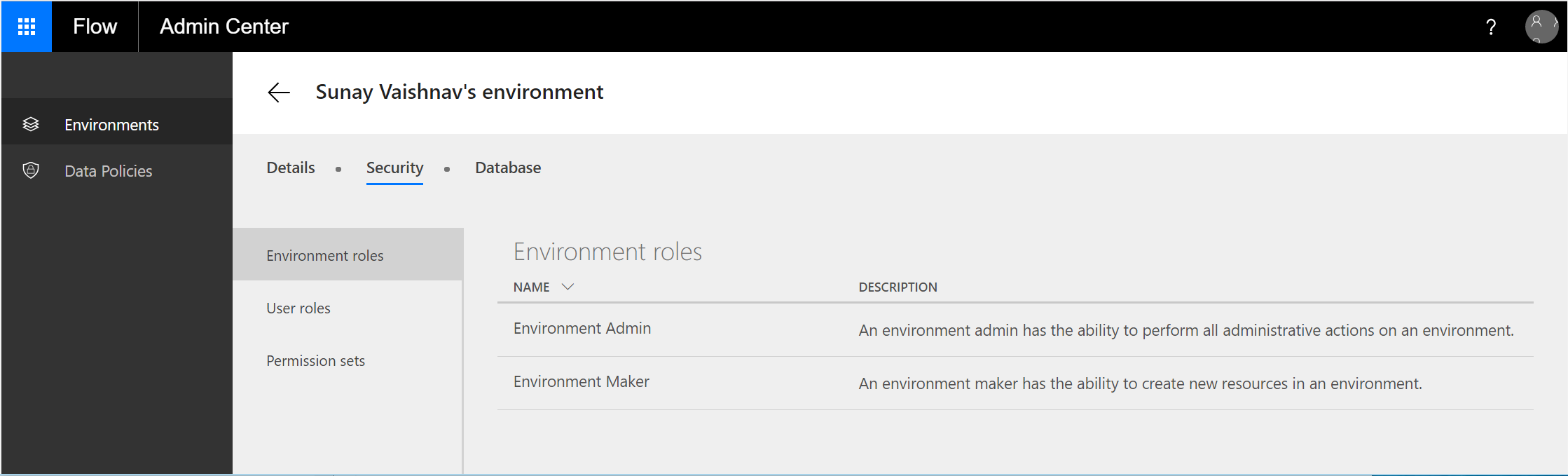 Environments have two built-in roles that provide access to permissions within an environment. You can configure these roles on the Security tab when you select an environment.