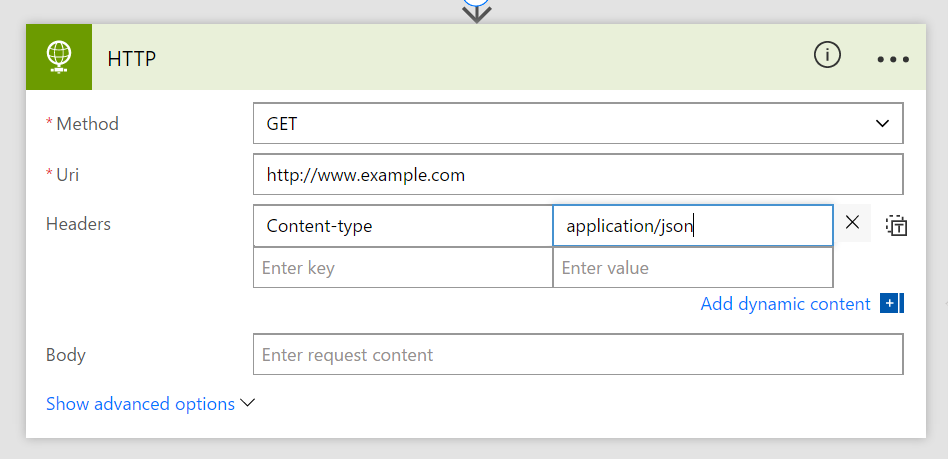 Finally, we have also made it easier to fill out the headers section of the HTTP action. Just like the Select action you can provide a header name and header value by just filling out the text boxes on the action.