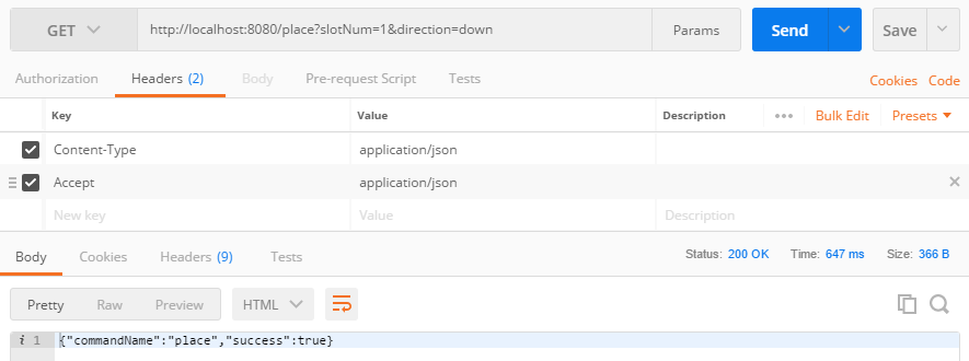 Use Postman to test your localhost:8080 and send a REST request. You’ll see your agent bot move.