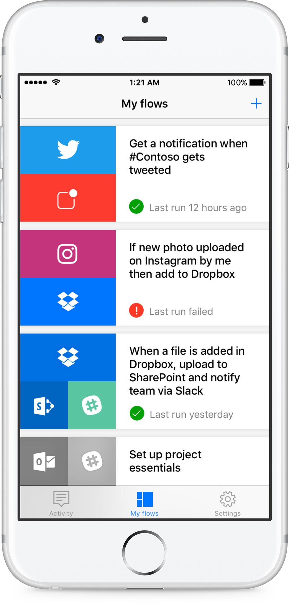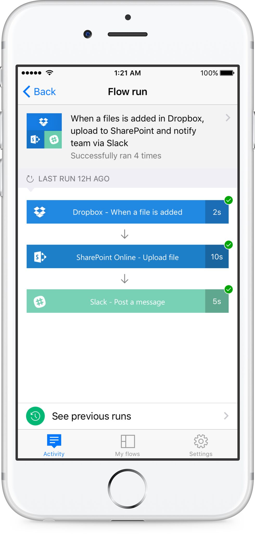 With the Microsoft Flow app, you can stay connected to your flows from your mobile device.