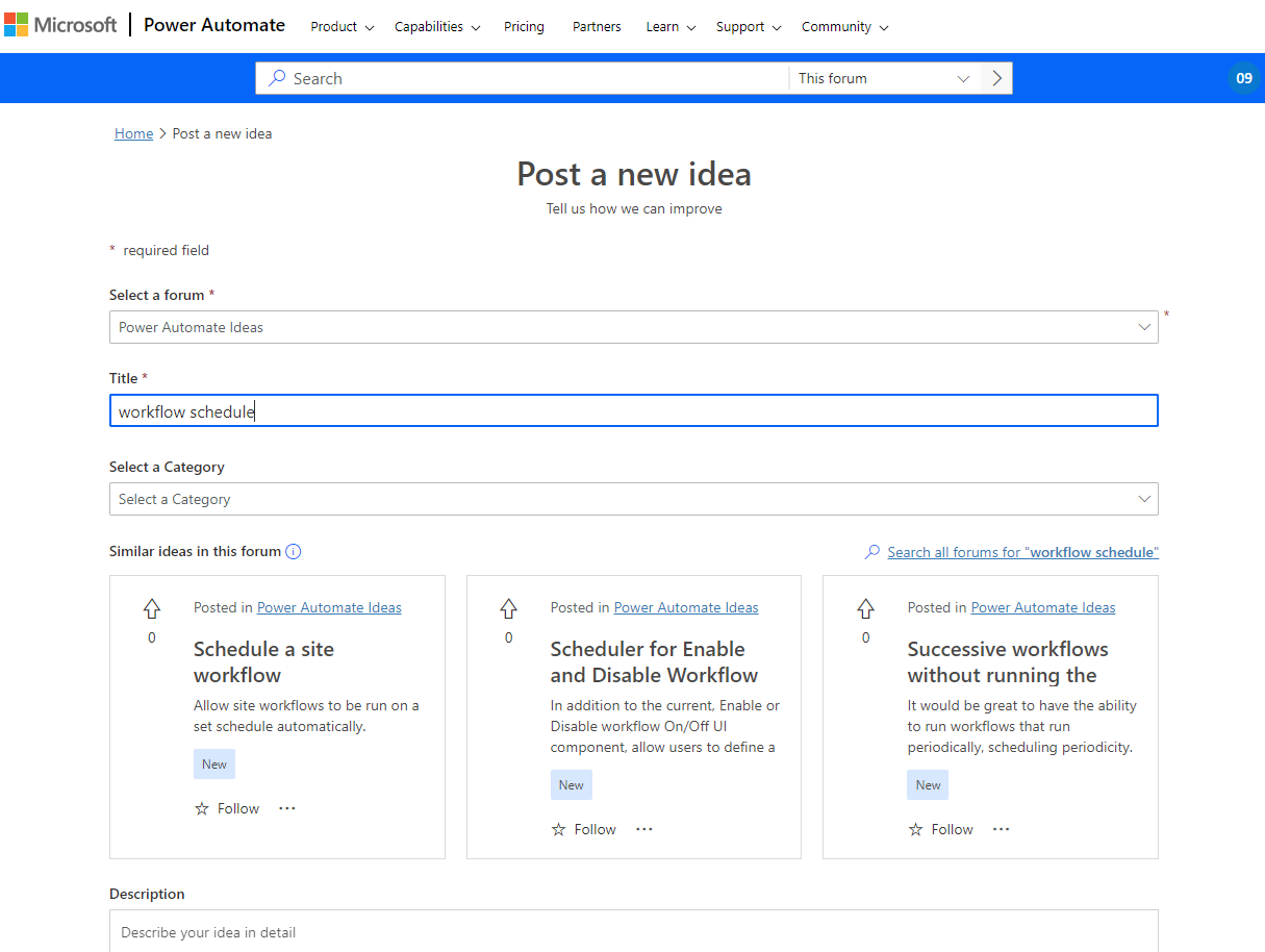 On July 18, Power Automate Ideas will go into “read-only” mode. The possibility to post a new idea will be temporarily disabled while we transfer all existing ideas to the new site: https://ideas.powerautomate.com