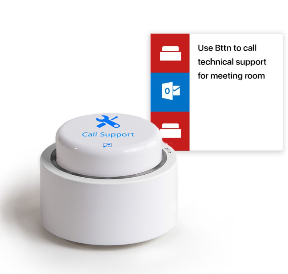 Lets take for example an IT support call scenario: You have various conference rooms at the office, and occasionally a projector stops working, or a network is down. Naturally this always happens at the most inconvenient time, when you don’t have a minute to spare. With a button in each conference room, simply push it to start a support ticket and alert IT of a problem in your location. No need to pick up a phone or log into a support system, just press a button.