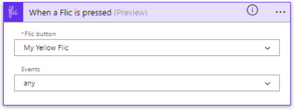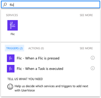 Then,within Microsoft Flow, when creating a new flow from blank or from template, once you select the Flic trigger and sign-in, you will be able to see your registered Flics.