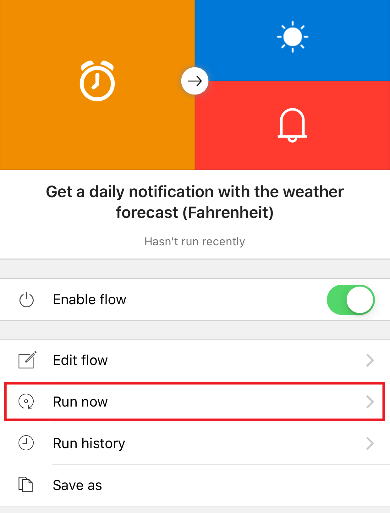 There is a new Run now option on the mobile app when you select a flow that has Recurrence as the trigger. This means you can quickly kick off flows that normally run on a schedule.