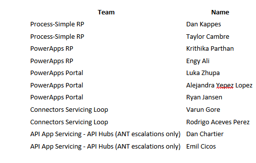 The flow I describe users a Custom API that’s published internally within the Microsoft tenant to talk to the ICM service, builds up a HTML table of all partner teams we typically interact with and updates a section in One Note weekly so we have a handy place to look up the onCall engineers for the team we interact with.