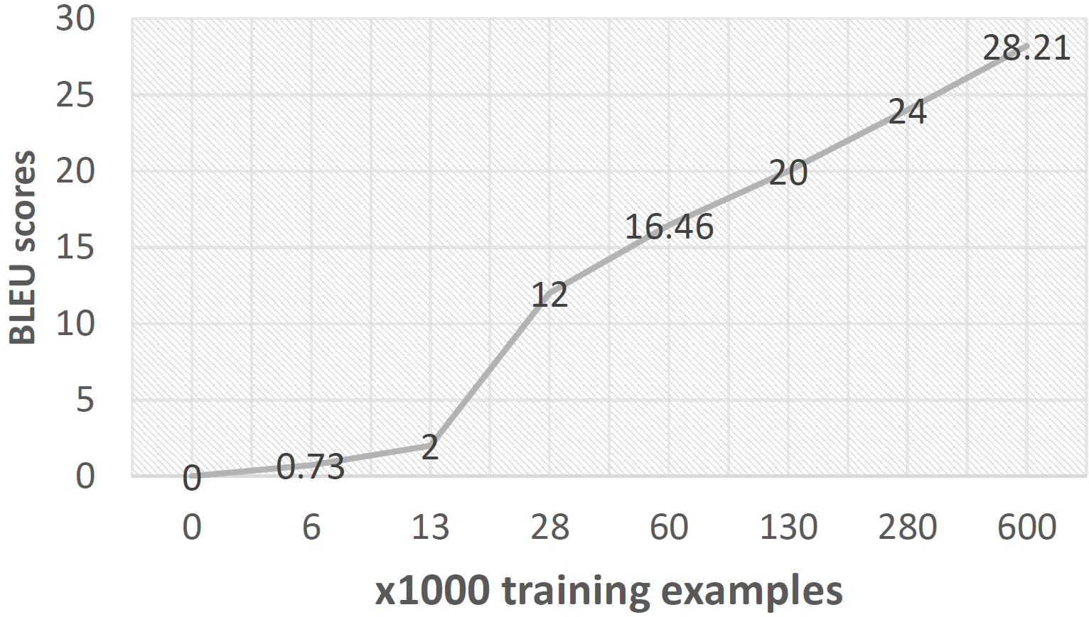 Figure 1 – Higher BLEU scores are not possible with low numbers of training examples.