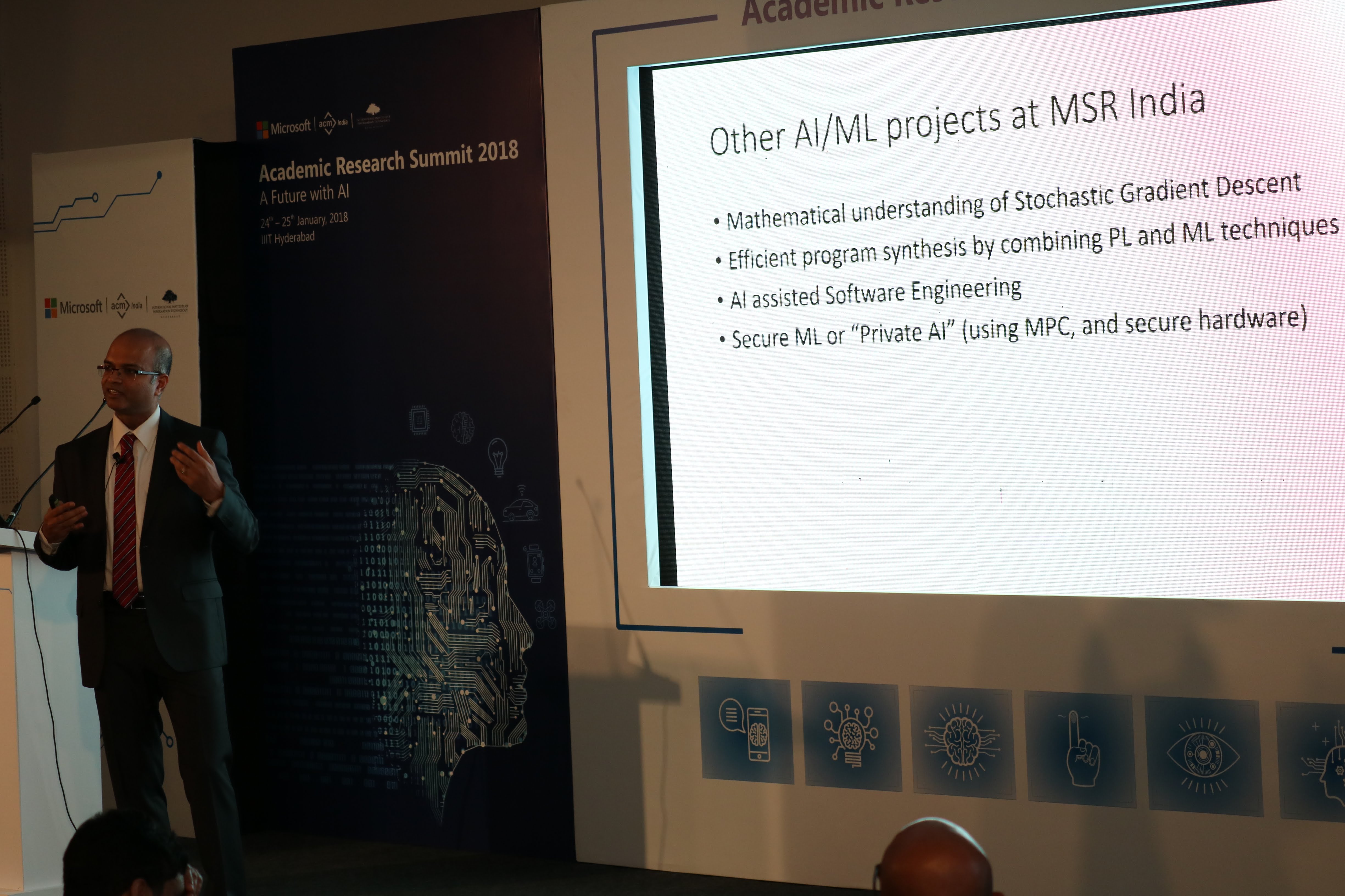 The Academic Research Summit provides the Indian research community with a common platform to come together and foster collaboration on cutting-edge research. Microsoft Research and the Association for Computing Machinery are co-organizing the summit in partnership with the International Institute of Information Technology Hyderabad. The theme of the event is Artificial Intelligence: A Future with AI.