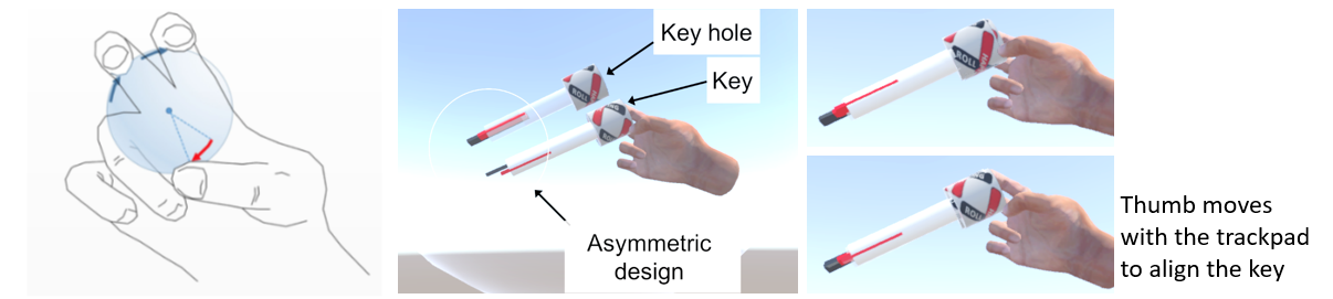 Figure 4: Using TORC to insert a key on a keyhole. TORC allows precise manipulation of a held object’s rotation by sensing finger motion.