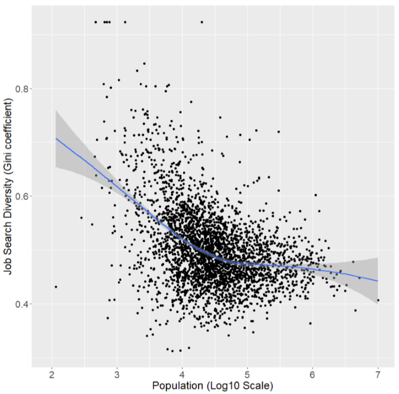 Figure 1. – Diversity of job searches as it relates to population across U.S. counties.
