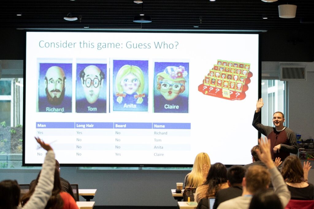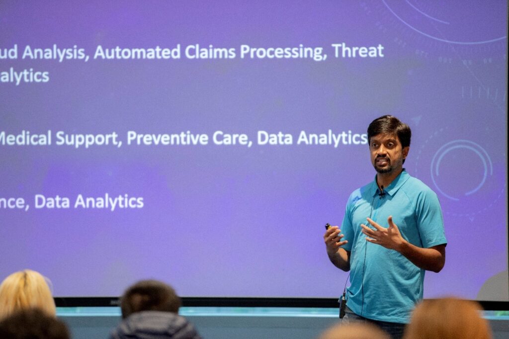 Steve Rowe, Data Science and Engineering Manager in the Core Data team, and Eric Olson, Data Science Lead on the Developer Platform team within Azure Cosine group, gave a fantastic introduction to ML, “Lifting the Lid on ML.” The goal was to provide students with enough background on ML to investigate further themselves. The talk was well received by the students based on the exciting interactions we saw during and following the presentation.