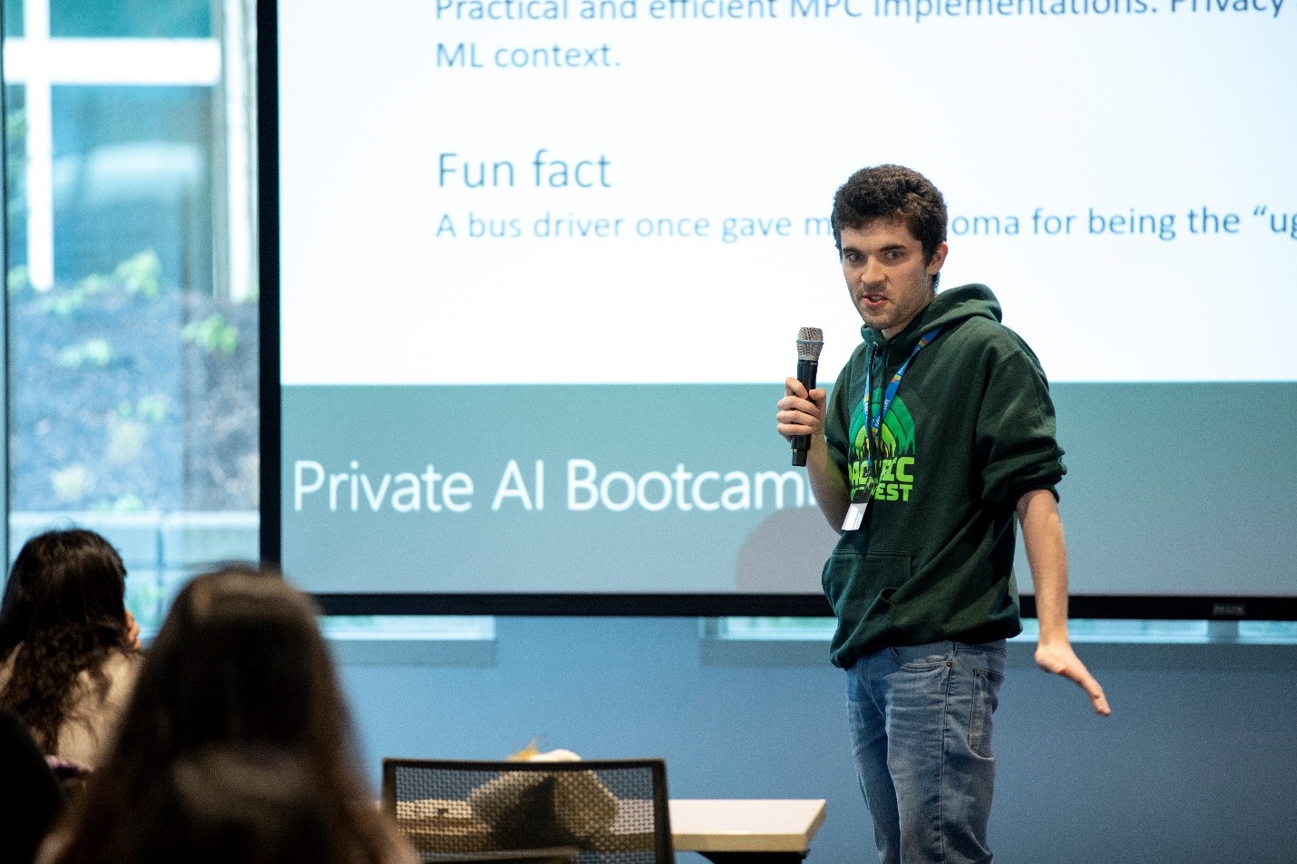 The Private AI Bootcamp was a three-day tutorial on using an advanced cryptographic tool, homomorphic encryption, for privacy-preserving ML (PPML). 34 outstanding PhD students, chosen from more than 100 applicants in related fields, were funded by Microsoft Research Outreach and were invited to Redmond for tutorials from cryptography and ML experts at Microsoft Research. Students came from top universities around the world, submitting personal visions for their research, among other materials, that were reviewed by Microsoft researchers for selection. In their one-minute introductions at the start of the seminar, it was clear that selected PhD students came from many diverse perspectives and backgrounds.