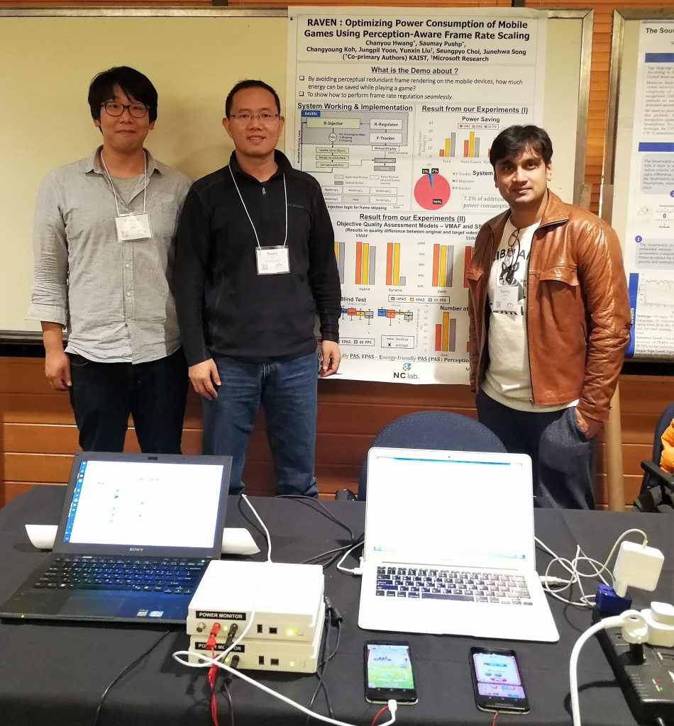 RAVEN is the first system designed to achieve frame rate scaling and energy savings based on perceptual similarity for mobile games. The paper describing the RAVEN system “RAVEN: Perception-aware Optimization of Power Consumption for Mobile Games” (opens in new tab) has been published and demonstrated at MobiCom 2017. The authors include Chanyou Hwang, Saumay Pushp, Changyoung Koh, Jungpil Yoon, Seungpyo Choi and Junehwa Song from KAIST and Yunxin Liu from MSRA.