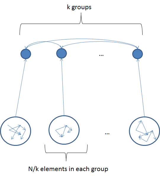 - The lower level elements are bucketed into groups each “reporting” to a parent element. Lower elements can freely talk to each other within the group, but cannot converse across the group boundary