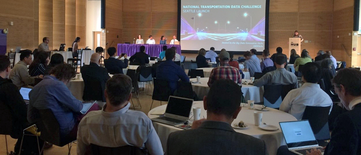 The National Science Foundation (NSF)-supported Big Data Innovation Hubs launched a National Transportation Data Challenge (opens in new tab) with a kickoff event in Seattle in May 2017. Microsoft Outreach, through its partnership with the Big Data Hubs organized an Azure workshop and participated in a panel discussion (opens in new tab) on ‘How Cloud Computing Can Enable Transportation Data Science.’ The kickoff was the first in a series of events that are being organized across the US to launch this challenge. It is an activity that spans all four hubs, and is expected to reach all 50 states. Several teams across Microsoft contributed ideas on recent or ongoing work on transportation data science. Below is a summary of the all the contributions that were part of the event.