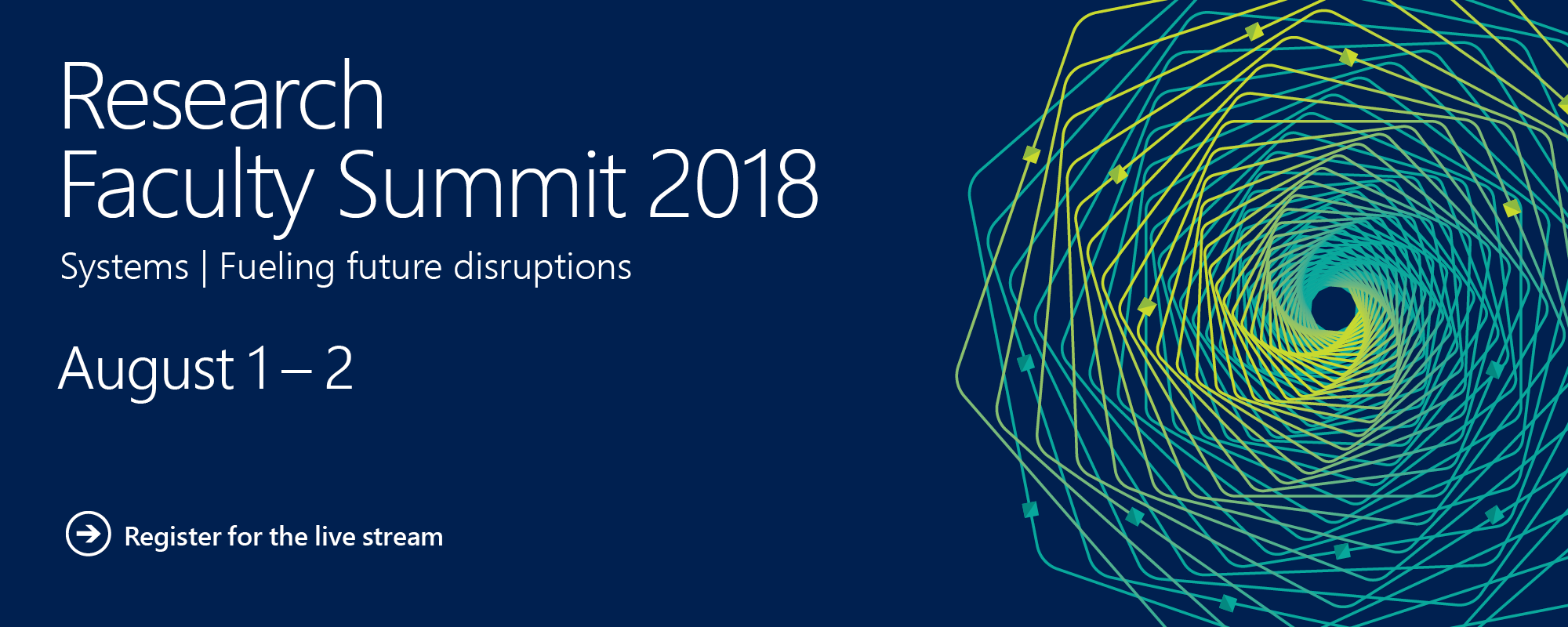The Systems focused Microsoft Research Faculty Summit is just around the corner on August 1-2, 2018! This year’s summit will highlight how Systems are the infrastructure Fueling Future Disruptions by delivering an engaging program exploring not only the importance of systems and systems research but their fundamental role in fueling the future disruptions that are now becoming evident through artificial intelligence. Immerse yourself in the trends and challenges through the insightful keynotes, sessions and panels. The summit brings together thought leaders and researchers from a broad range of research disciplines including computer science, social sciences, human design and interactions, and policy. Together we explore and discuss the research opportunities and challenges with building global scale systems composed of devices with micro-controllers at the edge and millions of servers in the cloud and at the edge.