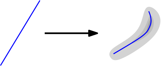However, one key difficulty in training GANs is the issue of dimensional misspecification: a low-dimensional input is mapped continuously to a high-dimensional space. As a result, GANs summarize the distribution via a low-dimensional manifold but do not accurately capture the full training distribution. The situation is illustrated in the following figure, where a one-dimensional input is mapped onto a two-dimensional distribution.