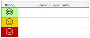 • Proud / not proud: Everyone rates on the same scale, keeping in mind the following: Is it a good user experience? Is it usable? Is it a quality experience? Are we proud? If you are proud of how the feature or task is working, mark it green. Yellow needs improvements If you are not proud of it, mark it as red.