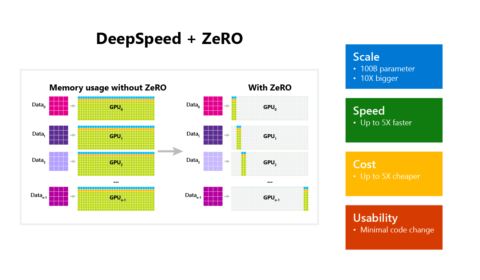 Last month, the DeepSpeed Team announced ZeRO-Infinity, a step forward in training models with tens of trillions of parameters. In addition to creating optimizations for scale, our team strives to introduce features that also improve speed, cost, and usability. As…