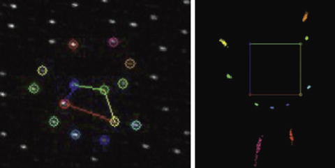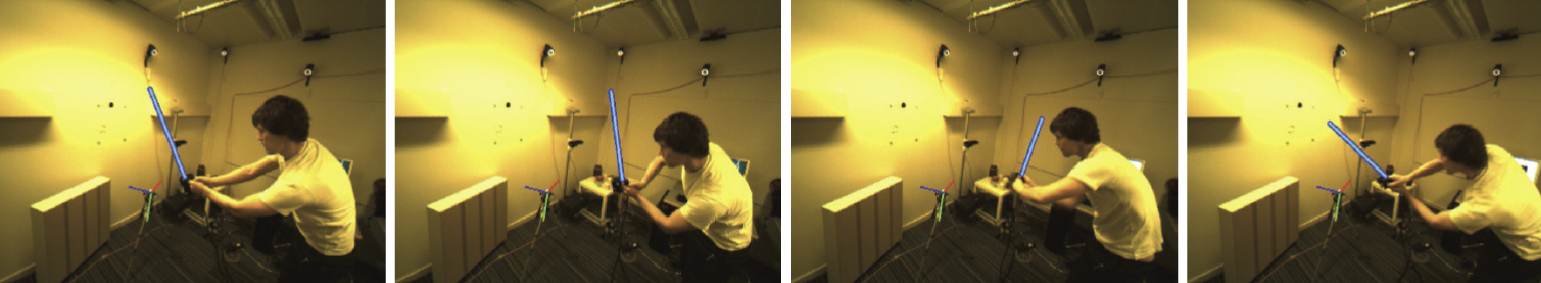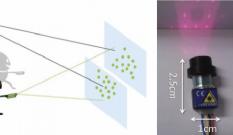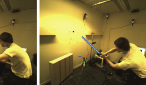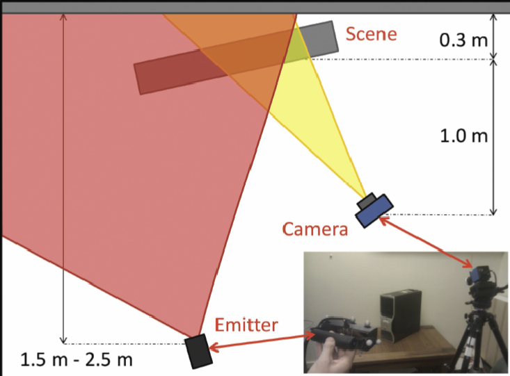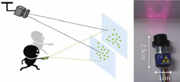 We present Kinectrack, a new six degree-of-freedom (6-DoF) tracker which allows real-time and low-cost pose estimation using only commodity hardware. We decouple the dot pattern emitter and IR camera of the Kinect. Keeping the camera fixed and moving the IR emitter in the environment, we recover the 6-DoF pose of the emitter by matching the observed dot pattern in the field-of-view of the camera to a pre-captured reference image. We propose a novel matching technique to obtain dot pattern correspondences efficiently in wide- and adaptive-baseline scenarios. We also propose an auto-calibration method to obtain the camera intrinsics and dot pattern reference image. The performance of Kinectrack is evaluated and the rotational and translational accuracy of the system is measured relative to gparound truth for both planar and multi-planar scene geometry. Our system can simultaneously recover the 6-DoF pose of the device and also recover piecewise planar 3D scene structure, and can be used as a low-cost method for tracking a device without any on-board computation, with small size and only simple electronics.