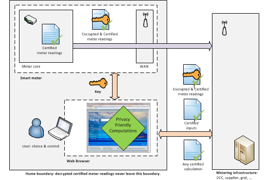 Information computed on the basis of fine-grained smart-meter readings has multiple uses within the energy industry, including billing, providing energy advice, settlement, forecasting, demand response, and fraud detection. Microsoft Research has developed technologies that allow for these computations to be executed without the need for customers to disclose raw meter readings. In brief, smart-meters transmit encrypted certified meter readings, that are processed by any customer device (smart phone, web browser, home gateway, personal computer) to compute the information required, and further provide them to authorised parties. These privacy-friendly computations can include time-of-use bills, settlement values, fraud detection flags, or usage profiles. Cryptographic mechanisms protect the privacy of the data and the correctness of the computations even when performed on customer devices.