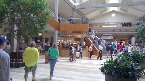 For this task, we want you to take a picture of the sign above the central information desk inside Bellevue Square Mall, whose address is 575 Bellevue Way NE, Bellevue, WA 98004, shown on the map at the bottom of this page. You should take a full frame picture (no cropping) like the example below.