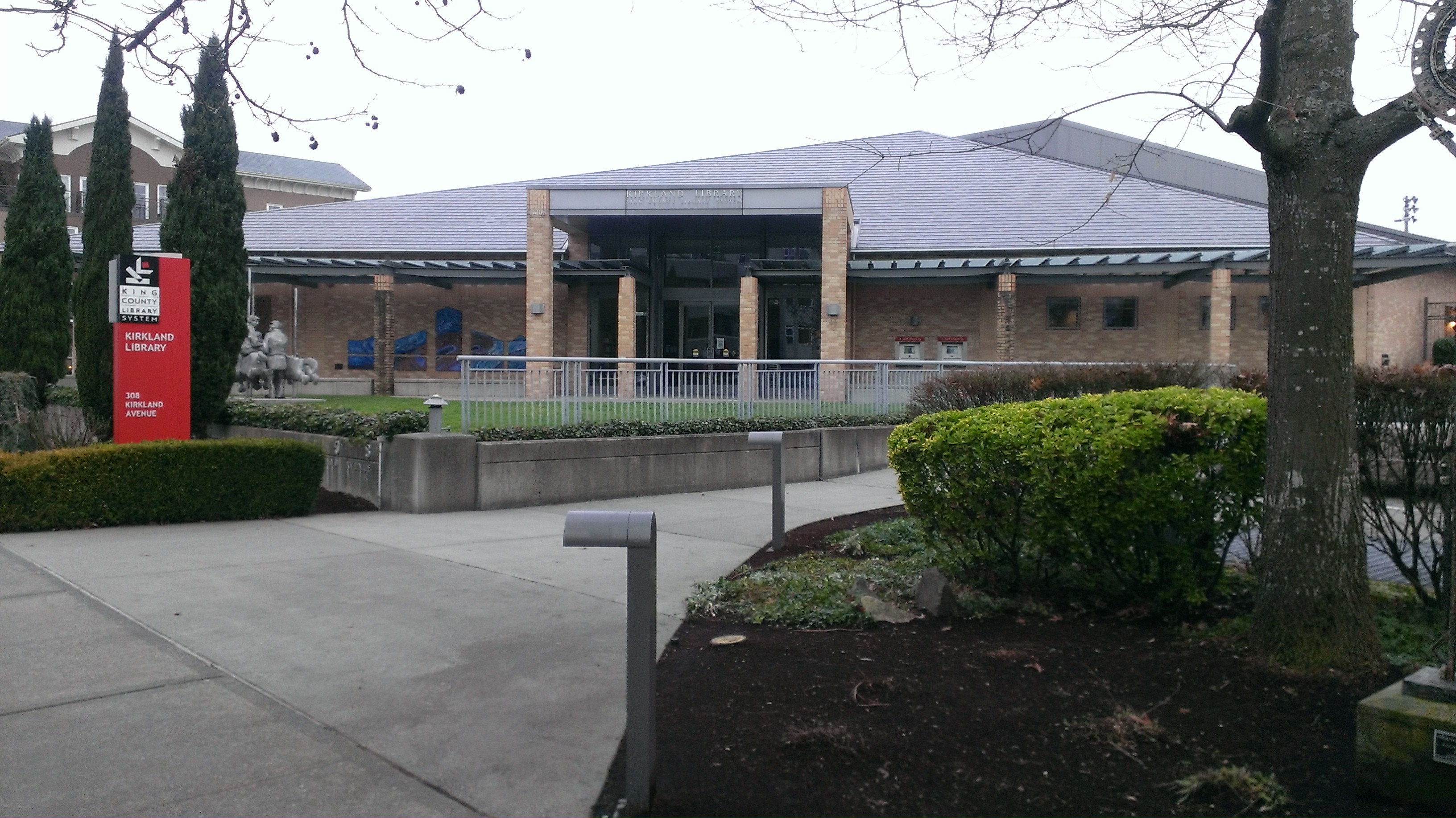 For this task, we want you to take a picture of the sign in front of the Kirkland Library at 308 Kirkland Avenue, Kirkland, WA 98033, shown on the map at the bottom of this page. You should take a full frame picture (no cropping) like the example below.