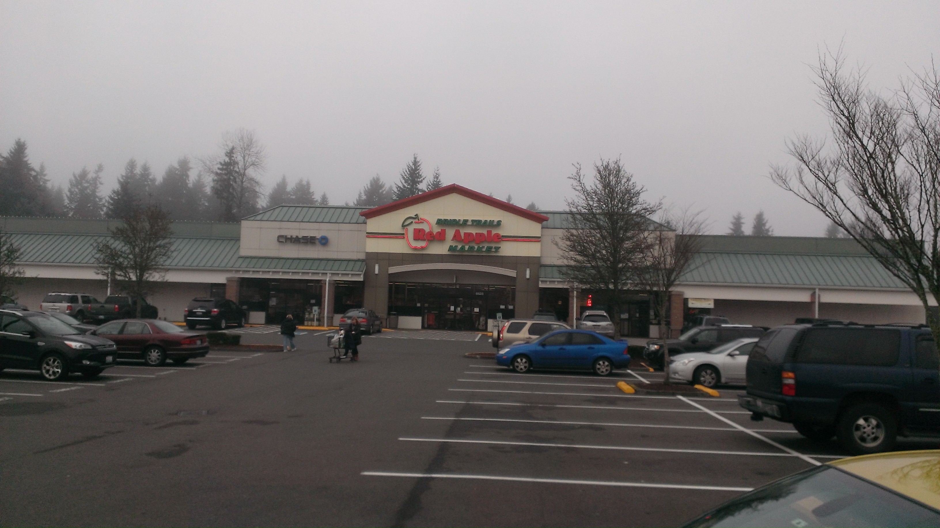 For this task, we want you to take a picture of the sign on the front of the Bridle Trails Red Apple Market, whose address is 6625 132nd Ave NE, Kirkland, WA 98033, shown on the map at the bottom of this page. You should take a full frame picture (no cropping) like the example below.