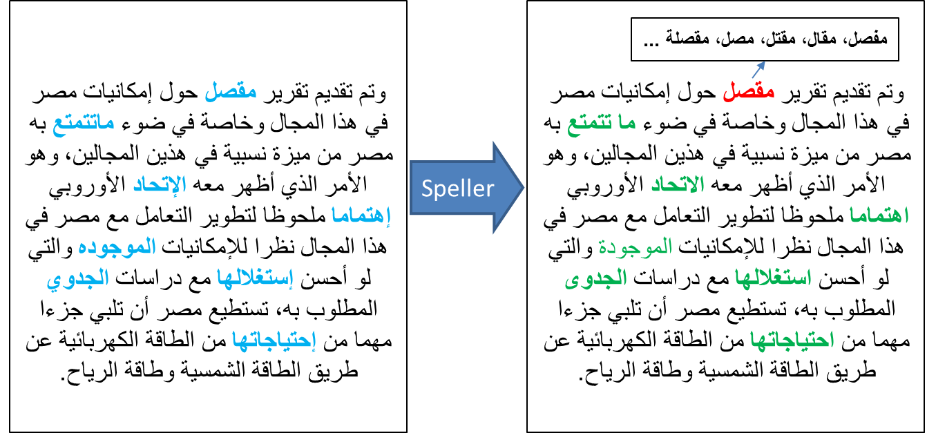 The Speller enhances the quality of written Arabic text by detecting erroneous words in a standard Arabic text.