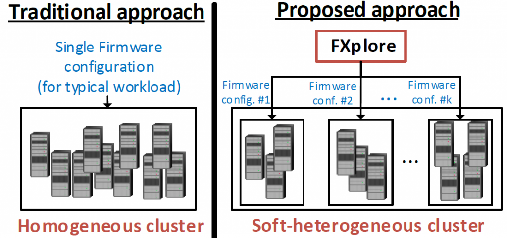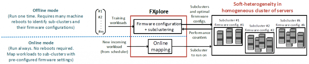 Armed with X-mem and other tools that allow us to accurately sense hardware performance metrics, we have developed machine-learning models that help us understand the relationship between workloads and firmware settings. Our methodology called FXplore utilizes performance metrics together with graph algorithms to efficiently search the design space of firmware configurations for a range of workloads. In addition to DRAM settings, it helps determine other key firmware configurations like hardware and adjacent cache-line prefetching, CPU and DRAM turbo boosting as well as Hyperthreading. Look at our CCGrid 16 paper for more details on FXplore.