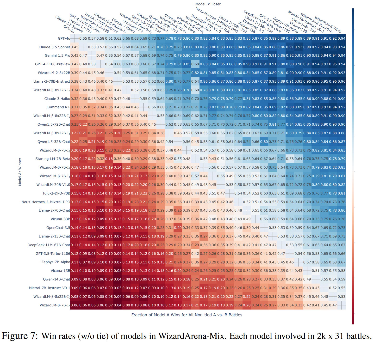 Assessing the effectiveness of large language models (LLMs) presents significant challenges. The method of conducting human-annotated battles in an online Chatbot Arena has been recognized as a highly effective evaluative approach. However, this process is hindered by the costliness and time demands of human annotation, complicating the enhancement of LLMs via post-training. In this paper, we introduce »Arena Learning», an innovative offline strategy designed to simulate these arena battles. We have developed a comprehensive set of instructions for simulated battles and employ AI-driven annotations to assess battle outcomes, facilitating continuous improvement of the target model through both supervised fine-tuning and reinforcement learning. A crucial aspect of our methodology is ensuring precise evaluations and achieving consistency between offline simulations and online competitions. To this end, we present WizardArena, a pipeline crafted to accurately predict the Elo rankings of various models using a meticulously designed offline test set. Our findings indicate that WizardArena’s predictions are closely aligned with those from the online Arena. We apply this novel framework to train our model, WizardLM-β, which demonstrates significant performance enhancements across various metrics. This fully automated training and evaluation pipeline paves the way for ongoing, incremental advancements in various LLMs via post-training. Notably, Arena Learning plays a pivotal role in the success of WizardLM-2, and this paper serves both as an exploration of its efficacy and a foundational study for upcoming discussions related to WizardLM-2 and its derivatives.