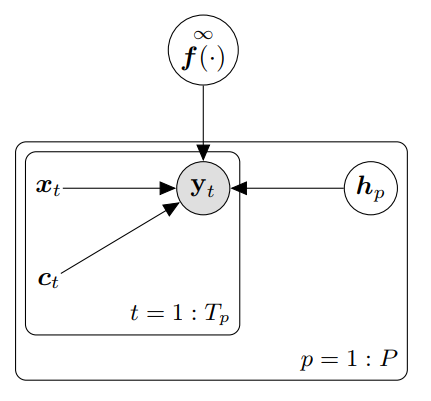 Data efficiency, i.e., learning from small data sets, is critical in many practical applications where data collection is time consuming or expensive, e.g., robotics, animal experiments or drug design. Meta learning is one way to increase the data efficiency of learning algorithms by generalizing learned concepts from a set of training tasks to unseen, but related, tasks. Often, this relationship between tasks is hard coded or relies in some other way on human expertise. In this paper, we propose to automatically learn the relationship between tasks using a latent variable model. Our approach finds a variational posterior over tasks and averages over all plausible (according to this posterior) tasks when making predictions. We apply this framework within a model-based reinforcement learning setting for learning dynamics models and controllers of many related tasks. We apply our framework in a model-based reinforcement learning setting, and show that our model effectively generalizes to novel tasks, and that it reduces the average interaction time needed to solve tasks by up to 60% compared to strong baselines.