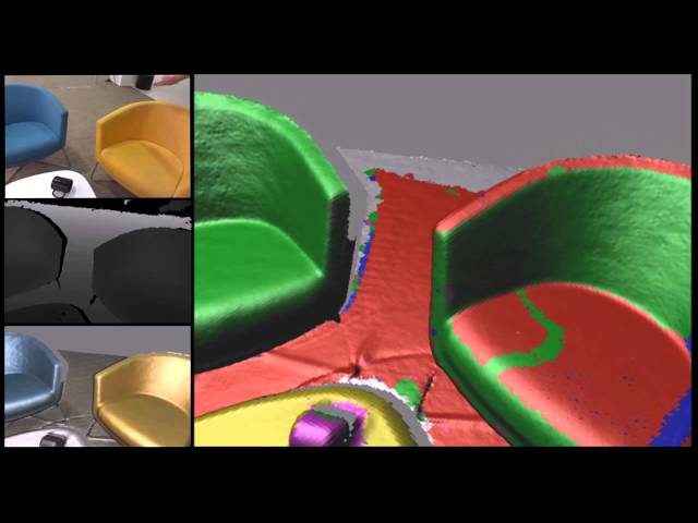 We present a new interactive and online approach to 3D scene understanding. Our system, SemanticPaint, allows users to simultaneously scan their environment, whilst interactively segmenting the scene simply by reaching out and touching any desired…