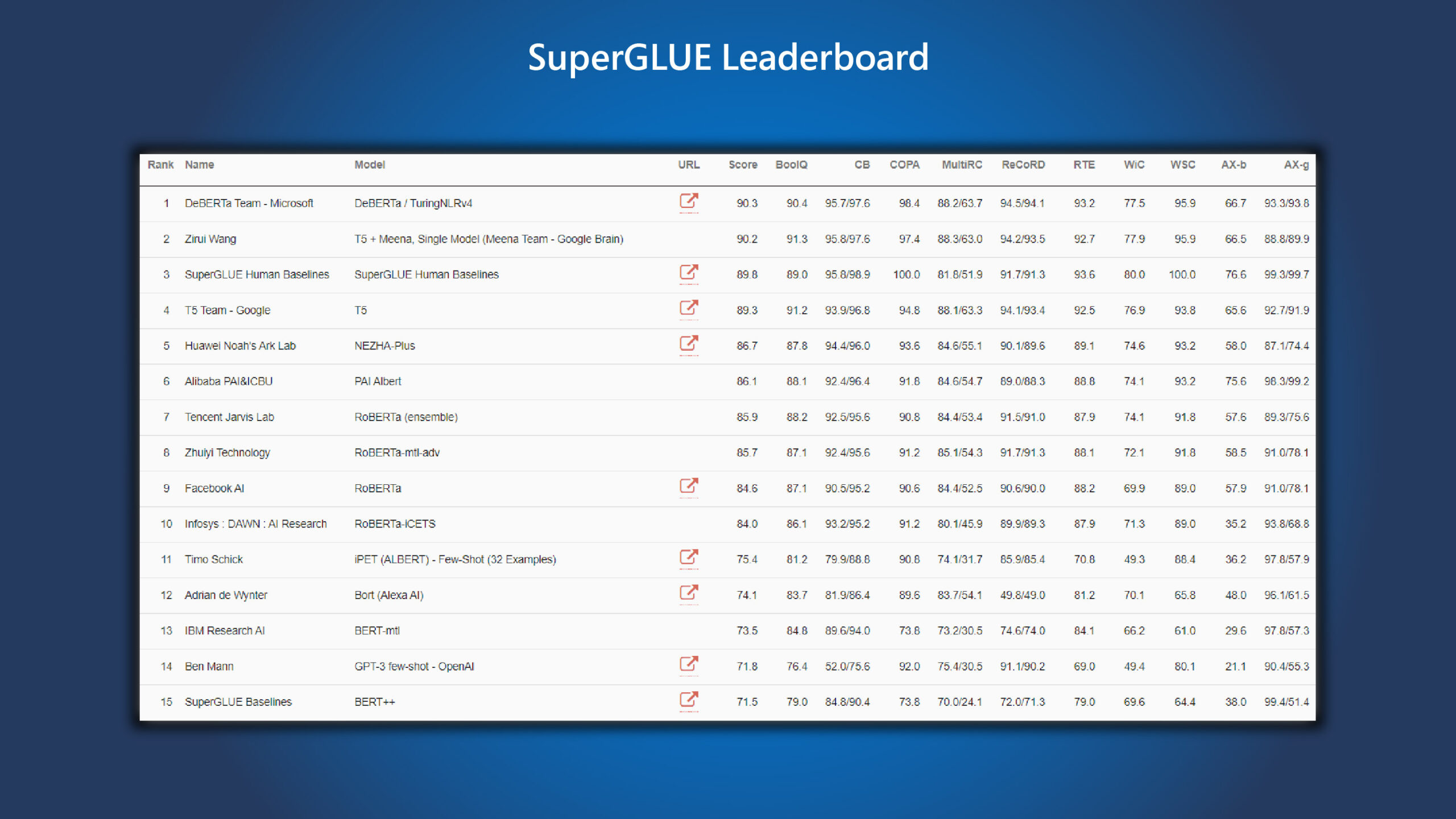 Microsoft DeBERTa surpasses human performance on the SuperGLUE benchmark