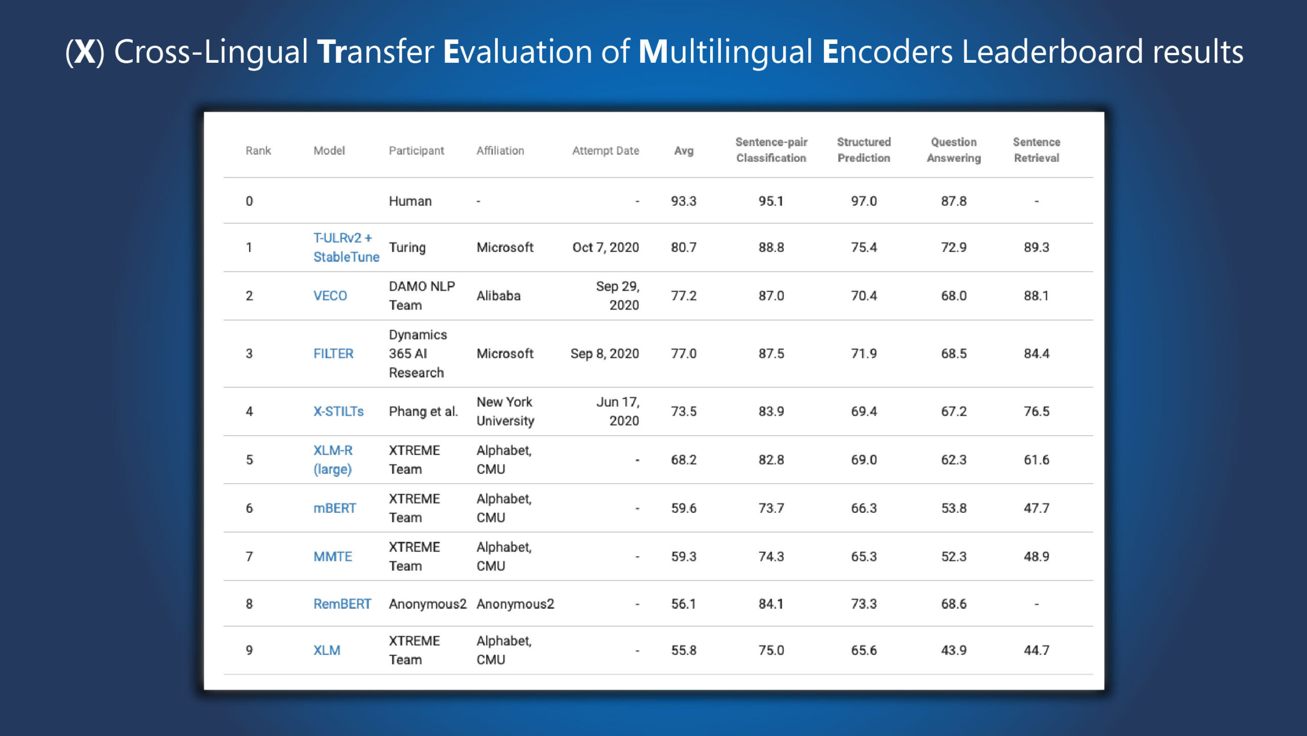 Microsoft Turing Universal Language Representation model, T-ULRv2, tops XTREME leaderboard