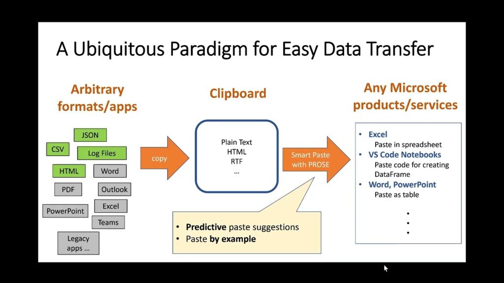 We show how to move data between arbitrary formats and applications through a simple copy-paste paradigm, using PROSE technologies that can analyse patterns of tabular data in arbitrary formats.