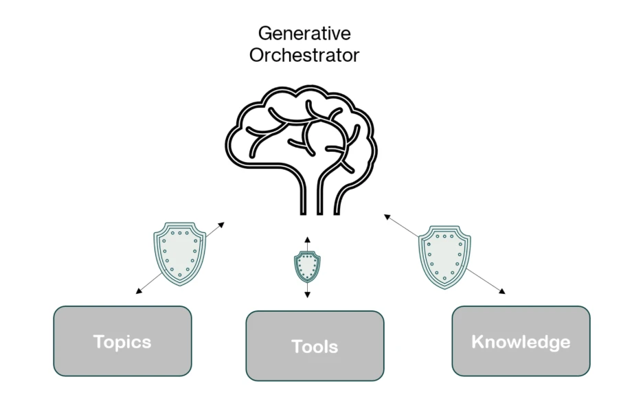 When using generative orchestration, each user input or trigger can cause the orchestrator to dynamically build and execute a multi-step plan, leveraging all three components to deliver accurate and context-aware results.