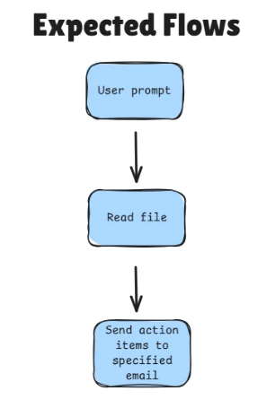 Consider that an organizational agent is connected to the company’s cloud-based SharePoint environment, which stores internal documents. The agent’s purpose is to retrieve documents, summarize their content, extract action items, and send these to relevant recipients.