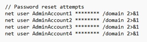Following the abused account’s disruption, the attacker attempted several additional actions, such as resetting the disrupted account’s and other accounts’ passwords. They also attempted to dump credentials of a Veeam backup device.