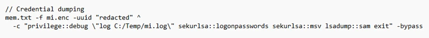 | Credential Access | T1003.001 | OS Credential Dumping: LSASS Memory | Dumped LSASS using Mimikatz and comsvcs.dll MiniDump. |