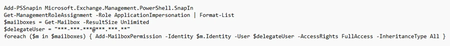 The threat actor then planted a Godzilla web shell on Exchange Server, used a privileged context to enumerate accounts with ApplicationImpersonation role assignments, and granted full access to a delegated principal across mailboxes using Add‑MailboxPermission. This access allowed the threat actor to read and manipulate all mailbox contents.
