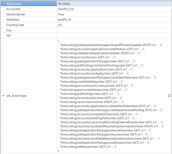 Some common API calls being made by the threat actor’s activity when using the Workday portal include the following: