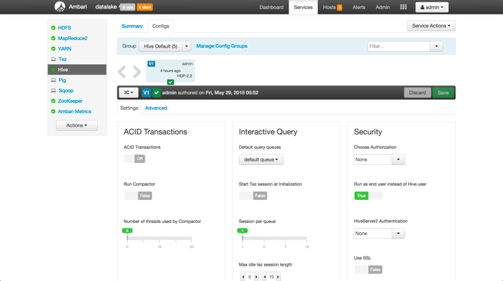 Of course, there is so much more that I didn’t cover here which is also part of HDP 2.3! There has been meaningful innovation within Hive for supporting Union within queries and using interval types in expressions, additional improvements for HBase, Phoenix, and more. But, for now, I’ll leave those for subsequent blog posts that will highlight them all in more detail.