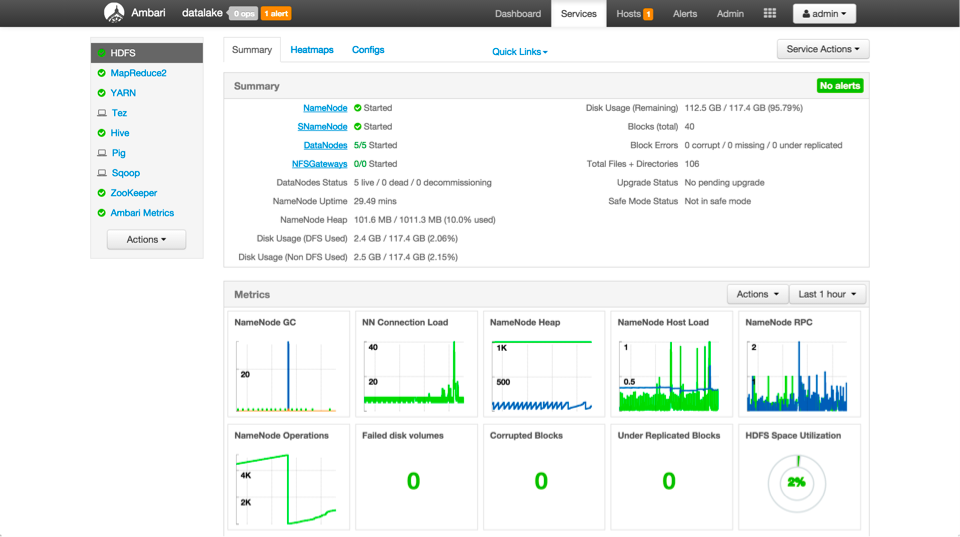 For the Hadoop Operator, we provide Smart Configuration for HDFS, YARN, HBase, and Hive. This entirely new user experience within Ambari is guided and more digestible than ever before.