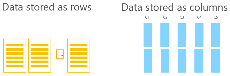 In-Memory Analytics addresses these challenges by leveraging updateable clustered columnstore index (CCI) available since SQL Server 2014. Clustered columnstore indexes (CCIs) store the data in columnar storage format as shown below storing each column independently. The two key benefits of storing data in columnar storage are: