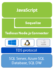 JavaScript is the most popular and active programming language among developers across various industries. Tedious Node.js connector is a JavaScript implementation of the Tabular Data Stream (TDS) protocol. This Node.js connector allows you to connect from platform of your choice to SQL Server on premise and in the cloud. Tedious is a native JavaScript connector that provides the npm install experience.