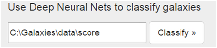 Imagine a simple web app that loads images from a folder and then classifies them into different categories – spiral or elliptical and then sub-types with those categories (e.g., is it a regular spiral or does it have a handlebar structure in the center).