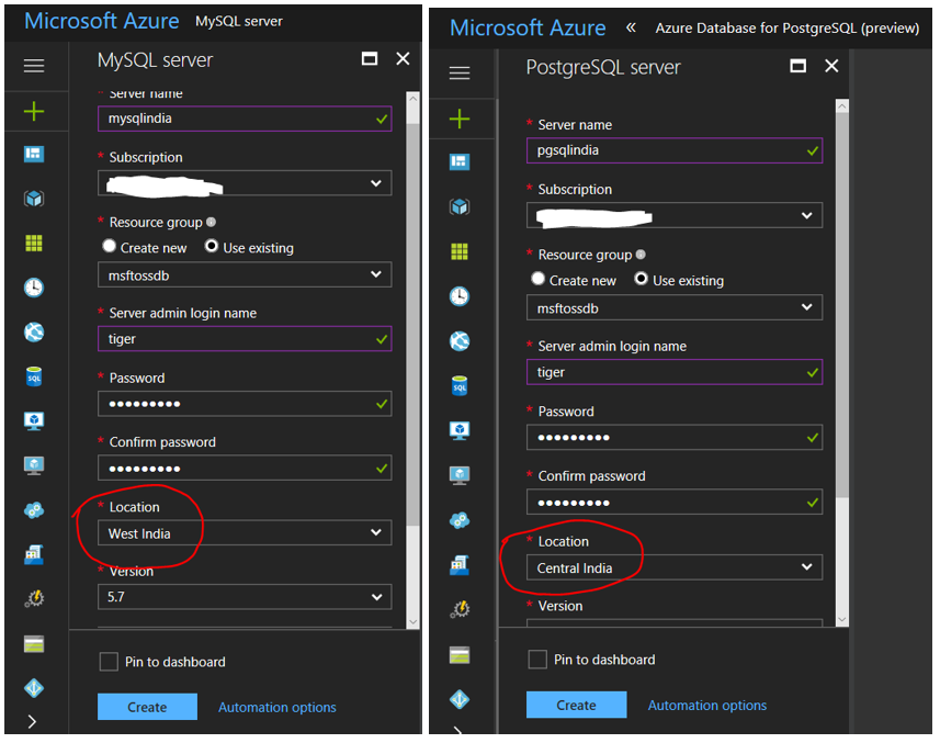 You can create an Azure Database for MySQL by following the steps mentioned in MySQL documentation, and you can create an Azure Database for PostgreSQL by following the steps outlined in PostgreSQL documentation. As you can see from the screenshots below, the “Location” drop-down now allows you to select India as a region!