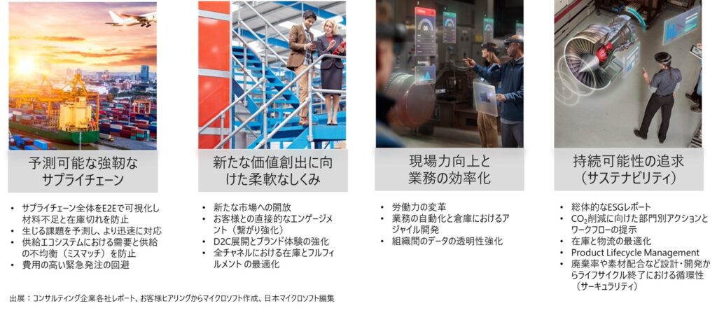 そこでポイントとなるのが、クラウドサービスの活用です。マイクロソフトでは、2022 年 11 月に「Microsoft Supply Chain Platform」構想を発表しました。
