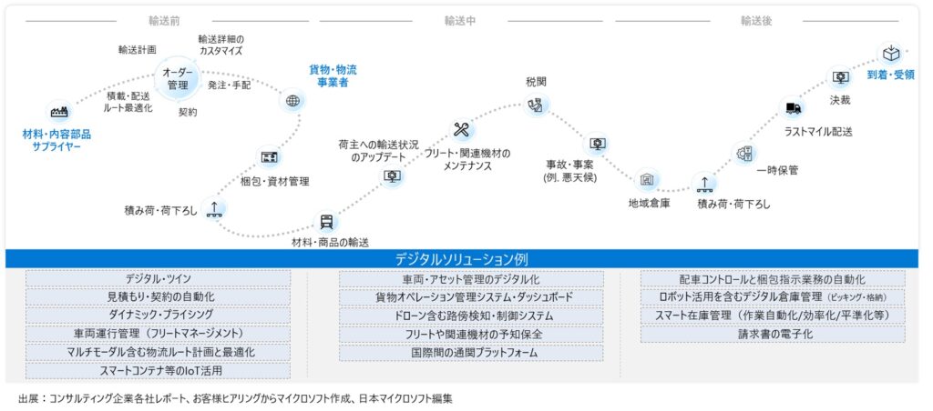 こうした激しい変化のただなかにあるロジスティクス/物流業界に対して、マイクロソフトは「スマート・ロジスティクス」を提唱し、クラウドを基盤とするデータ活用によって、業界全体のビジネスモデル変革を導く DX を支援しています。(参考:日本マイクロソフト 産業別ブログ:ロジスティクス/物流業界の未来を変革するマイクロソフトの先進テクノロジー)